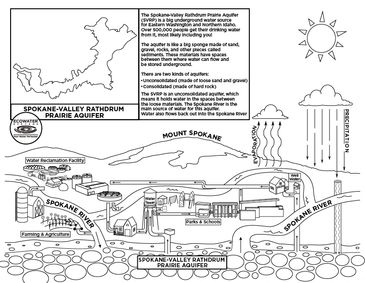 The SVRP is an unconsolidated aquifer, which means it holds water in the spaces between the loose materials. The Spokane River is the main source of water for this aquifer. Water also flows back out into the Spokane River